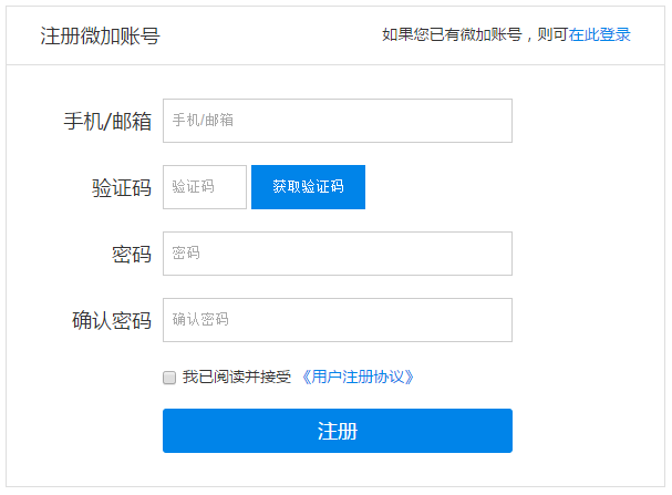 1. 在微加建站平台 http://www.wapadd.cn/ 使用手机号码或邮箱注册账号。