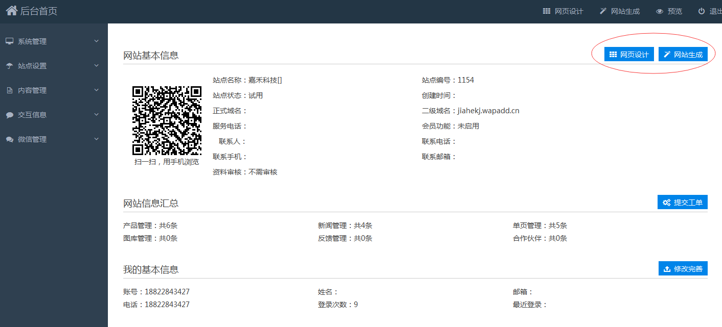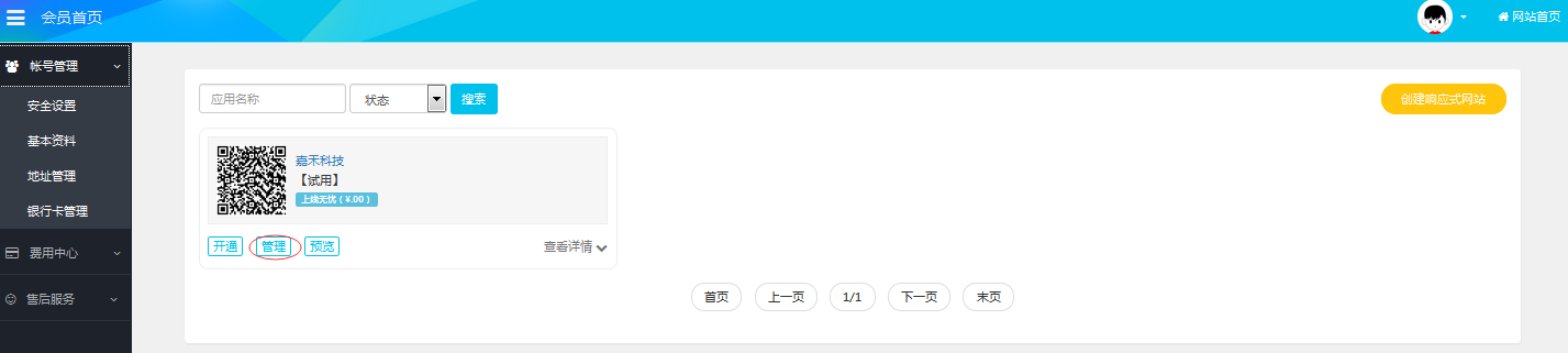 点击返回商城后,左上角我的站点,进去后在账户信息里看到你建的站点点击管理