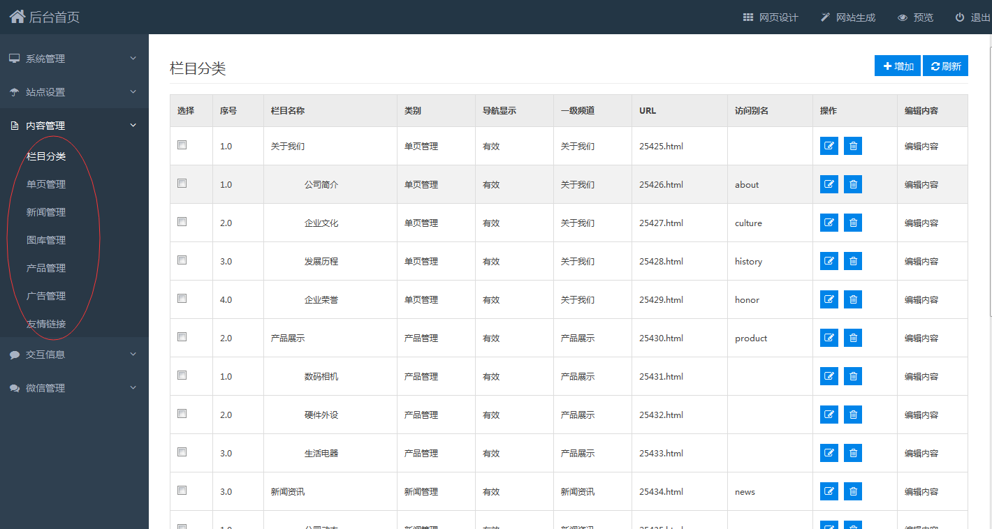 搭建关于页面的模板,其实关于页面和首页的内容页面差不多,这里就不做详细介绍了~模板上面的内容和效果都是可以修改的,很简单好学!后台管理这块相信大家也会,因为系统会自动生成的后台,一般需要什么自己改下就好,无需自己搭建