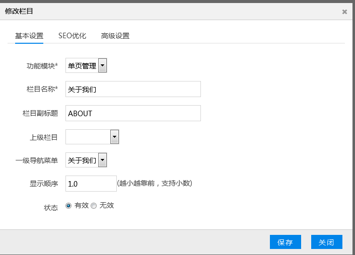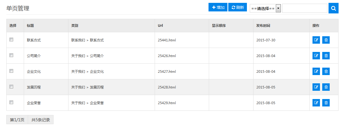 二.单页管理,这块无需多说,设置内容,跟栏目相对应